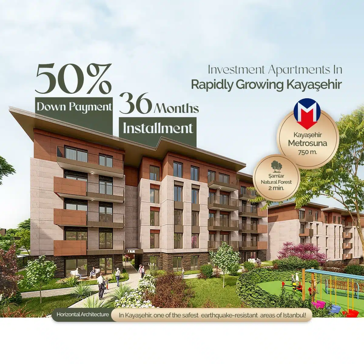 • تصميم عصري وأنيق: شقق واسعة من 2+1 إلى 4+1 تناسب جميع أفراد الأسرة.