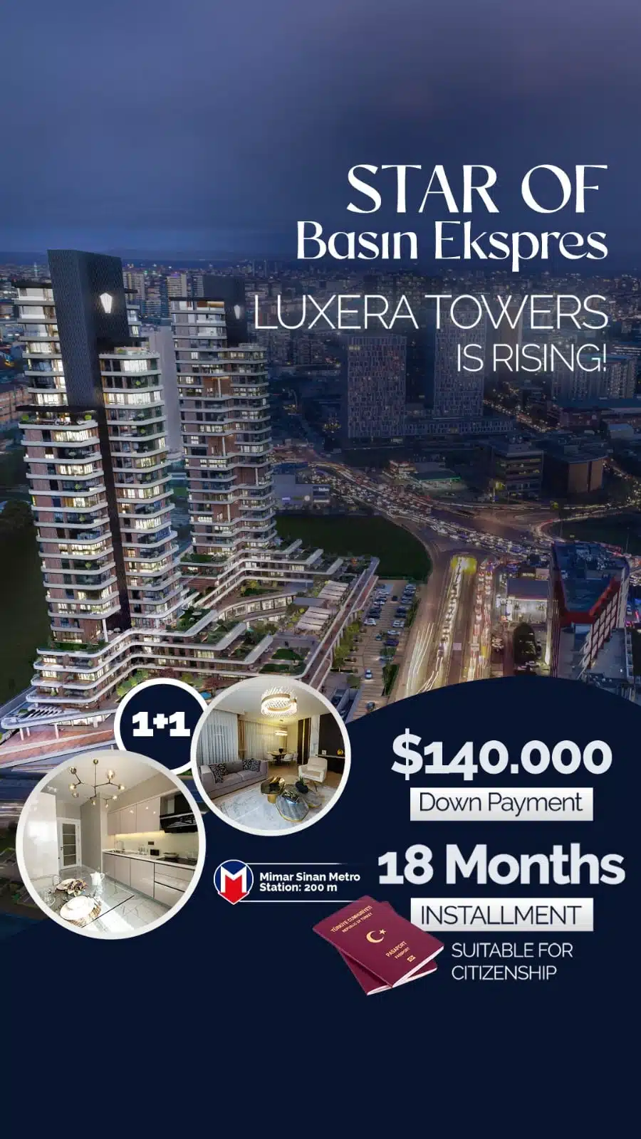 أيقونة الحياة العصرية في إسطنبول! يقدم لك لوكسيرا تاورز تجربة سكنية فريدة في منطقة باصن إكسبريس مع إطلالات بانورامية ومرافق عصرية.